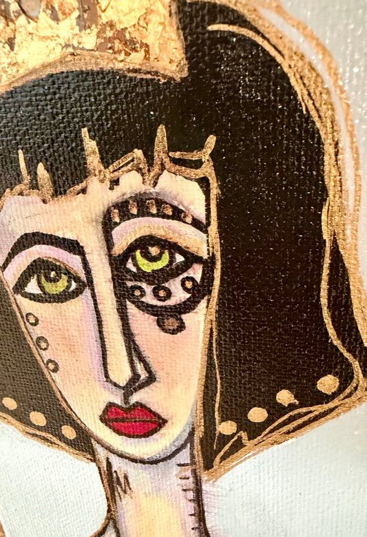Original, hand-carved & pulled linocut block print - Unframed, 8x10 - Abstract Queen Portrait.