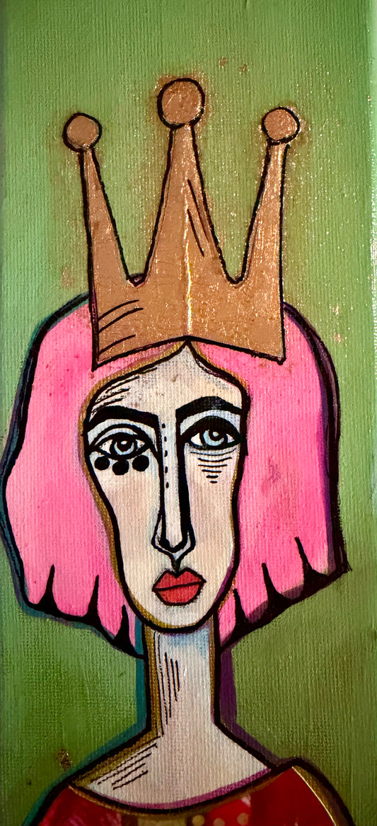 Original, signed mini /slender painting on canvas Abstract portrait w/mixed media 4x12”
